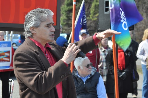 Above: Bill Mauro MPP speaks at the rally in Thunder Bay on Wednesday.