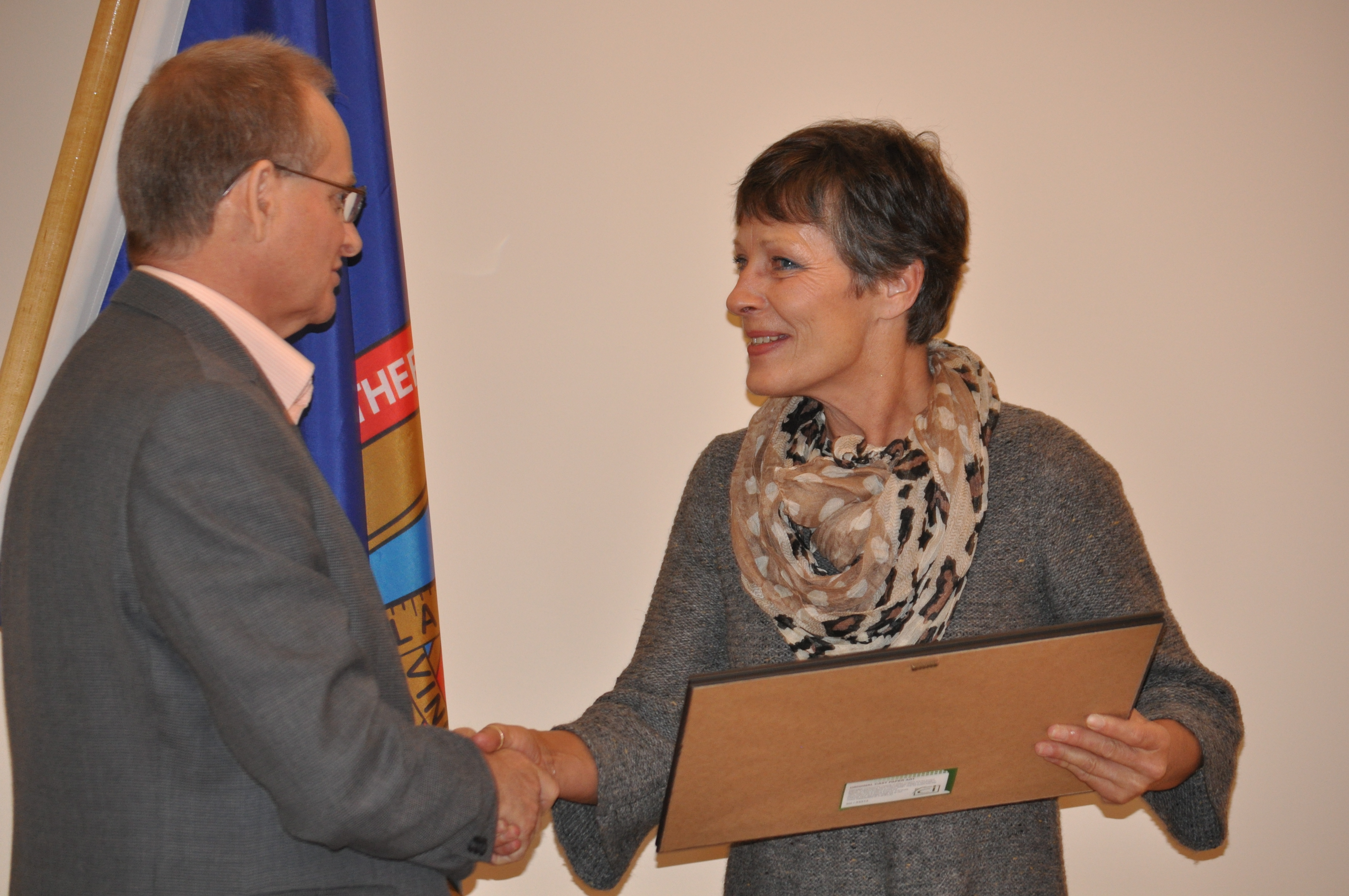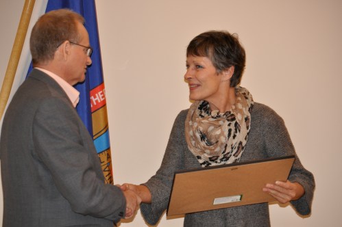 Norma Gunn receives the Ontario Federation of Labour 2012 Occupational Disability Advocacy Recognition Award in Port Hope November 15.