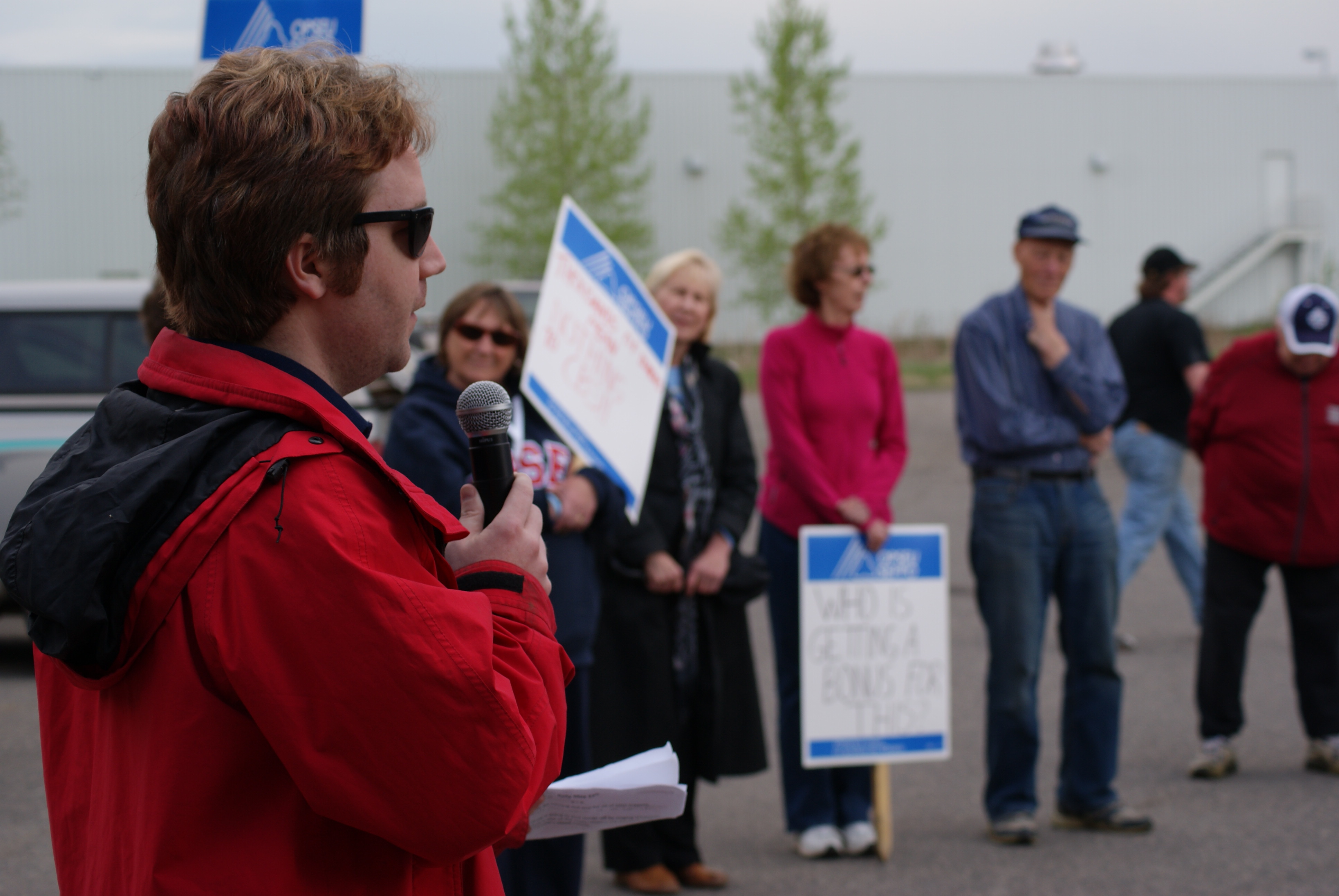 Thunder Bay resident Reg Meclay spoke about the health problems he experienced after receiving American plasma collected from an Arkansas prison. City Councillors Ken Boshcoff and Larry Hebert – both former donors at the clinic – also spoke. Messages were read from Mayor Keith Hobbs and federal MPs Bruce Hyer and John Rafferty.